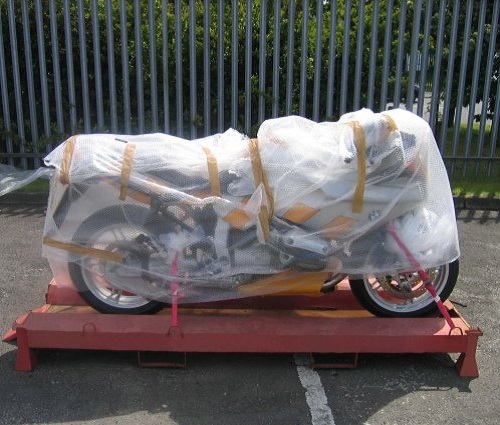 Well, it’s a pretty straight forward procedure, you drop off your motorcycle to our HUB and we assist you to mount it on one of our purpose made transport cradle. We then bubble wrap it and prepare it for shipment, as shown in the photographs below. We have a variety of differently sized transport cradles to accommodate most types of motorcycle.